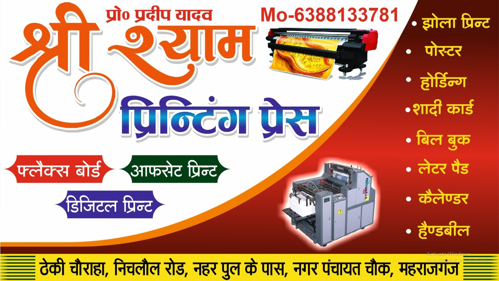 प्रो. प्रदीप यादव के नेतृत्व में, श्री श्याम प्रिंटिंग प्रेस महराजगंज में 5 साल से अधिक समय से उच्च गुणवत्ता की प्रिंटिंग सेवा प्रदान कर रहे हैं। हमारा उद्देश्य है ग्राहकों को सर्वोत्तम प्रिंटिंग समाधान प्रदान करना।